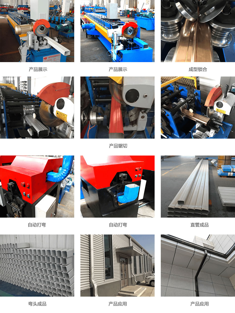 工藝流程: 開卷—導向進料—輥壓成型—潤滑鋸切—出料—打彎縮口