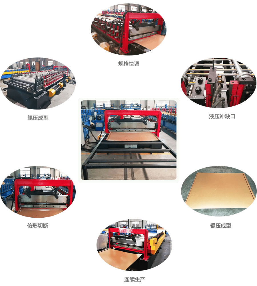 工藝流程: 開卷→引料校平→輥壓成型、沖缺口→仿形切斷→成品出料