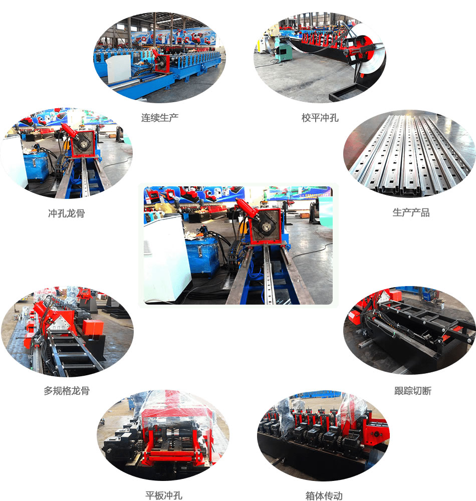 工藝流程: 開(kāi)卷→引料校平→儲(chǔ)料→伺服送料→平板沖孔→儲(chǔ)料→輥壓成型→仿形切斷→出料 開(kāi)卷→引料校平→平板沖孔→輥壓成型→跟蹤切斷→出料