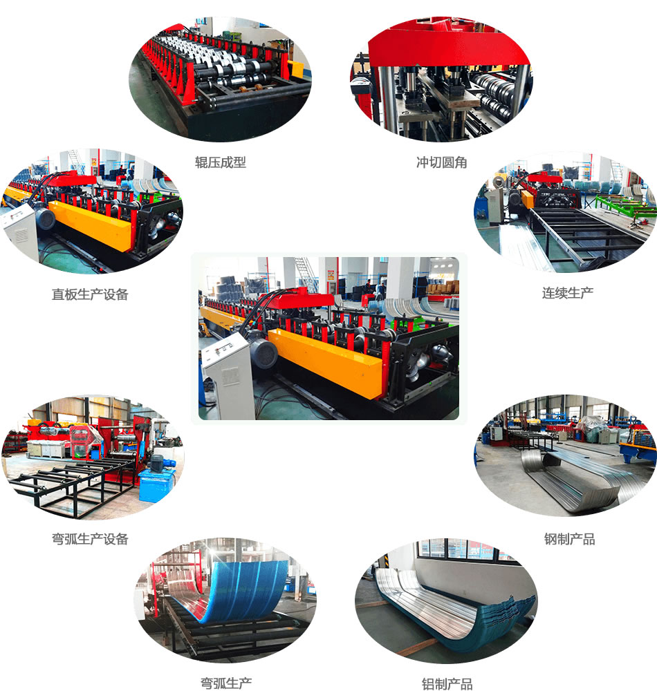 工藝流程:上料 → 導(dǎo)向整平 → 輥壓成型 → 沖孔+沖圓角+切斷→ 輥壓成型 → 出料→彎弧→成品