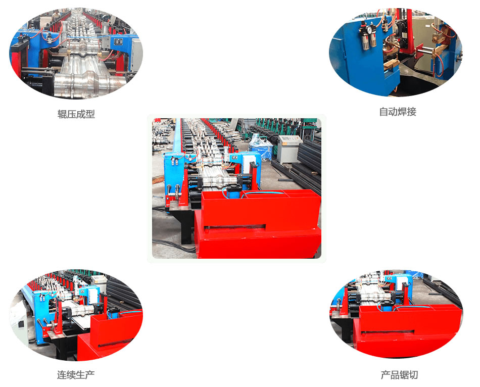工藝流程: 開(kāi)卷—引料校平—輥壓成型—產(chǎn)品矯正—自動(dòng)點(diǎn)焊—成品鋸切—托板出料