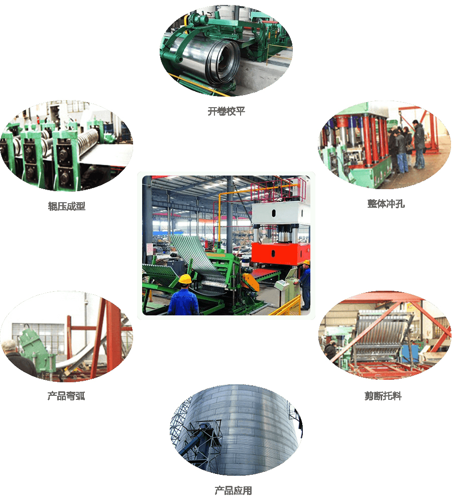 開(kāi)卷—引料、校平—輥壓成型、矯正—沖孔—彎弧—剪切—出料