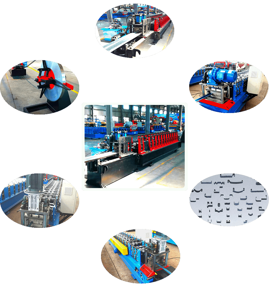 工藝流程: 開卷—導向進料—輥壓成型—沖孔切斷—托板出料