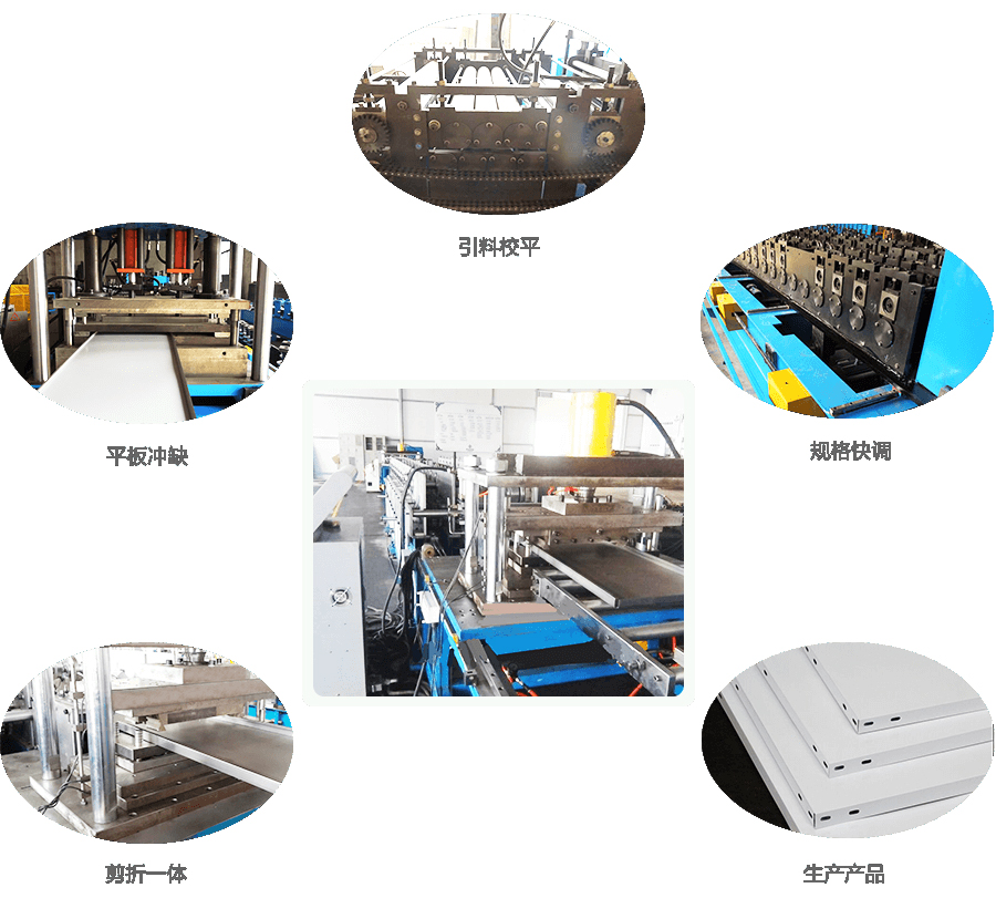 工藝流程: 開卷→引料校平→平板沖缺口→輥壓成型→切斷翻邊→出料